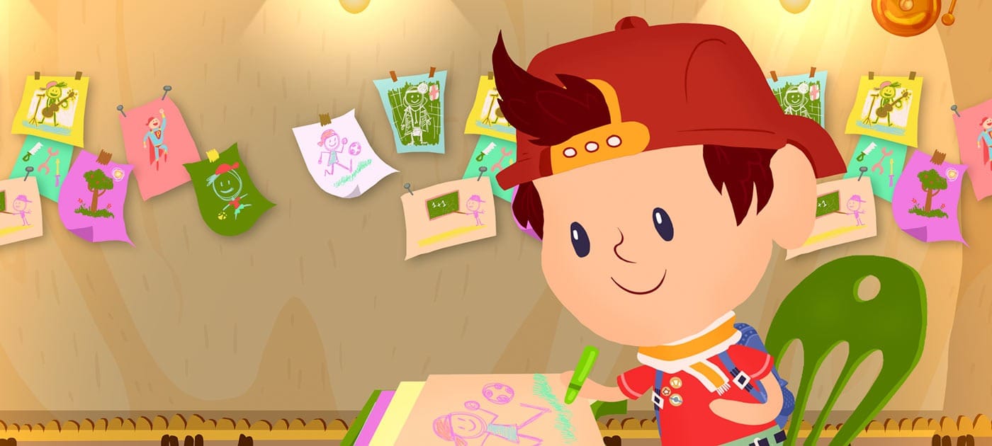 Nosso diretor Bill Szilagyi foi quem conduziu toda a parte artística de ilustração, passando pela criação visual dos personagens e cenários e também dirigiu toda a produção das animações. Ao todo, tivemos 9 pessoas envolvidas na parte de produção do projeto.
